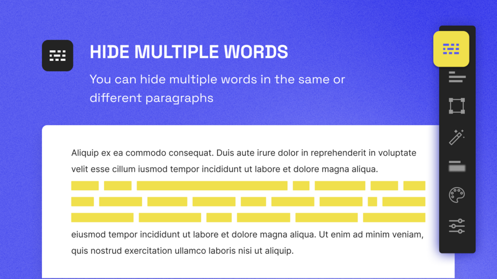 This browser extension is for you! It allows you to blur any element or paragraph on page without leaving your browser.