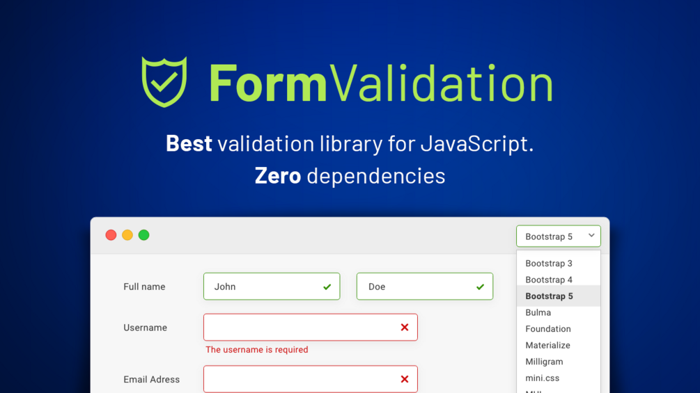 FormValidation is the best validation library for JavaScript.