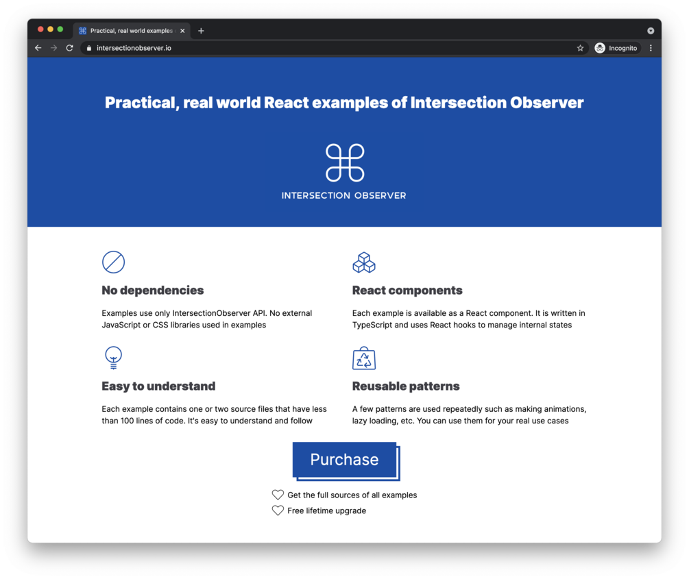 Practical, real world React examples of IntersectionObserver API.