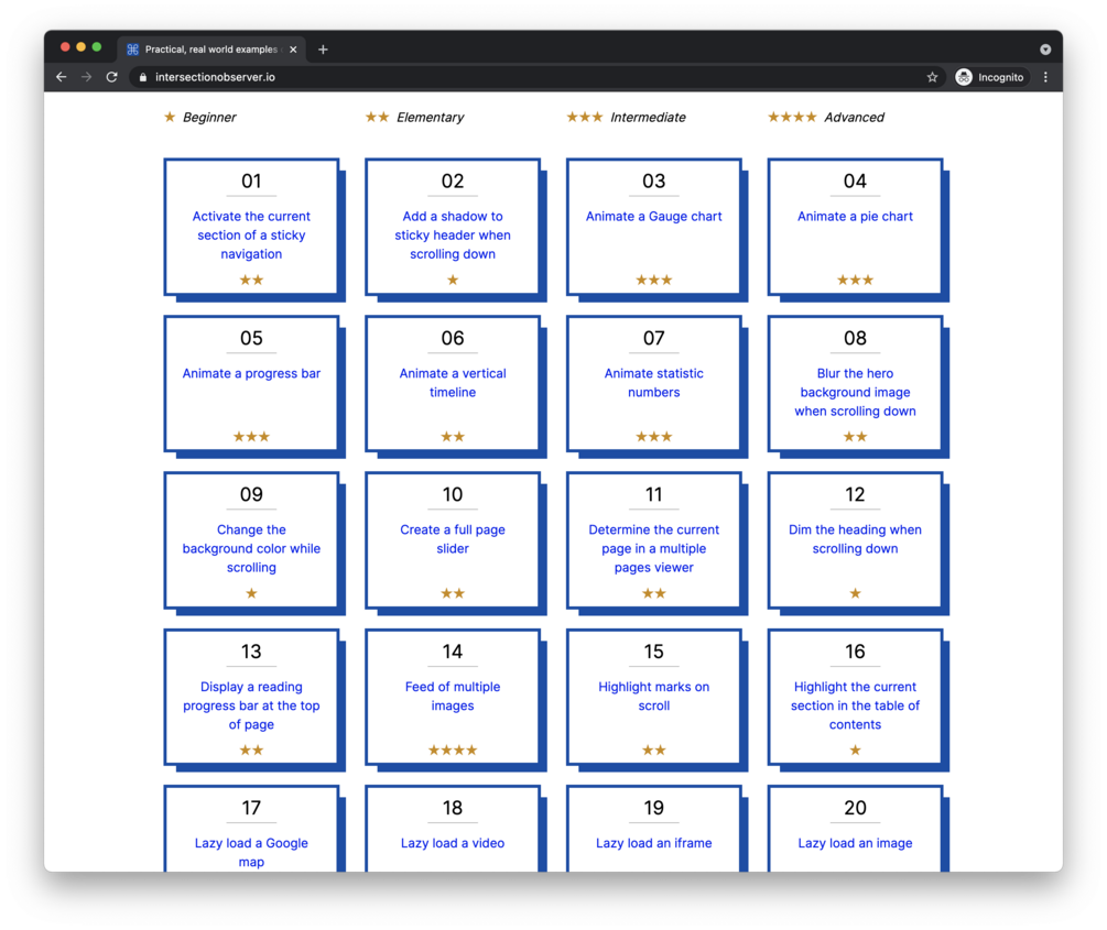 IntersectionObserver API Examples